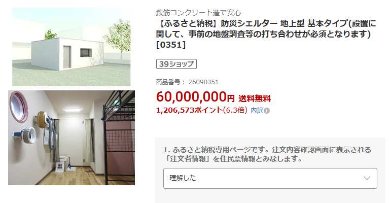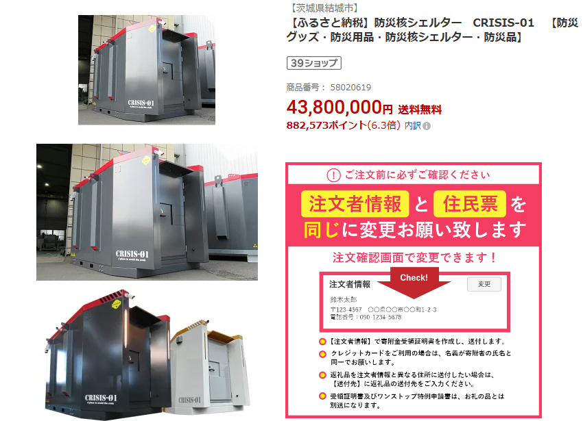 核シェルターを個人で設置することは可能である。ふるさと納税で核シェルターを選択することができるくらいだ。